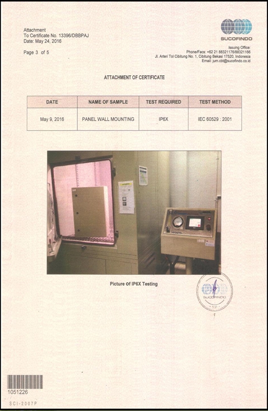 Our panel enclosures are rigorously tested and certified by SUCOFINDO, proving their durability and safety against harsh environmental conditions.